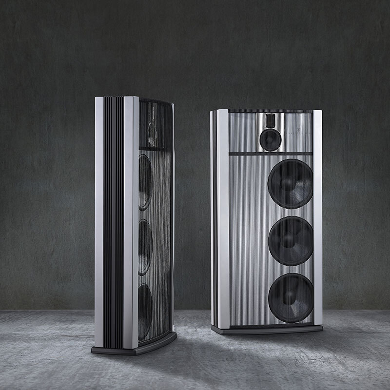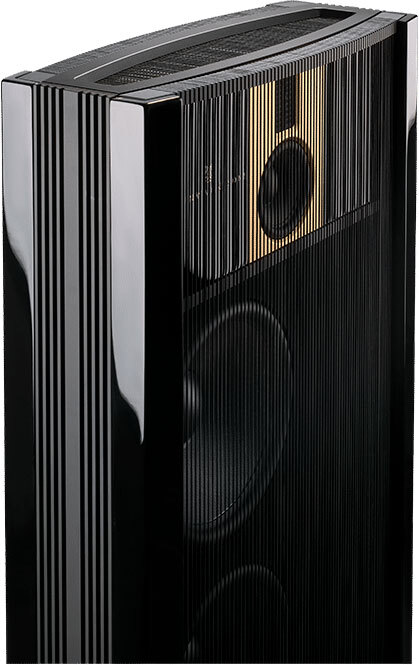 Для дипольного динамика требуется большая передняя часть, чтобы разделить переднее и заднее излучение низкочастотного звука. В модели B боковые стороны элегантно отогнуты, чтобы увеличить акустическую ширину динамика. Кроме того, шесть НЧ-динамиков образуют чрезвычайно большую излучающую поверхность, способную воспроизводить линейную мощность до 25 Гц.