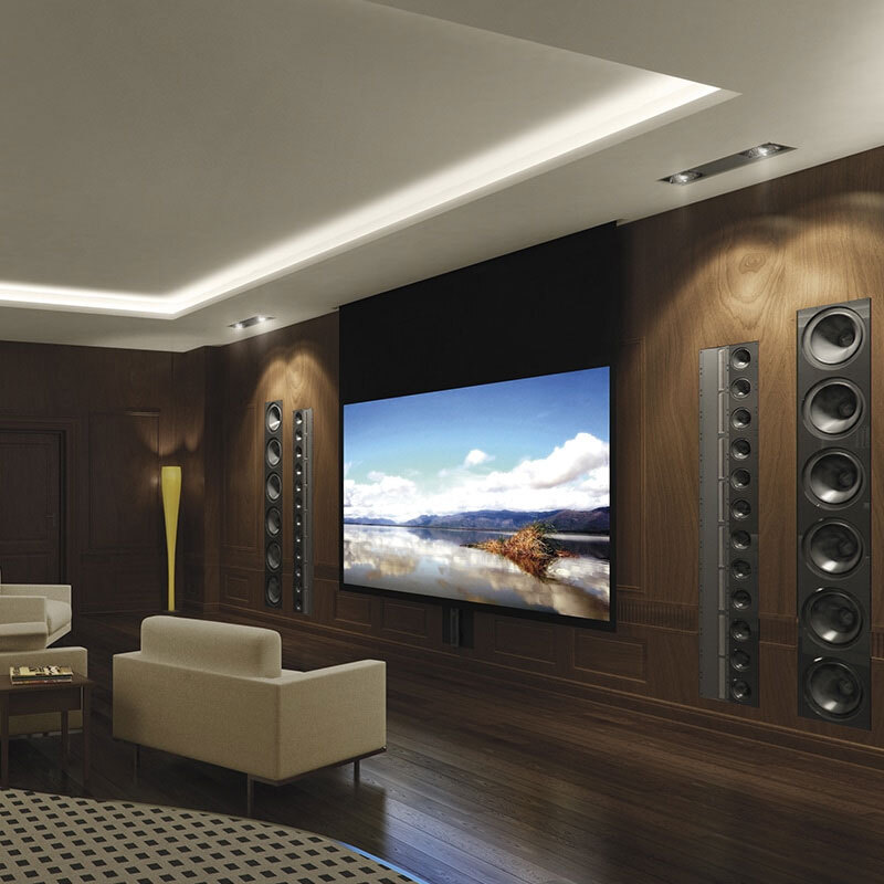 Модули LS можно устанавливать друг на друга, и для этого необходимо использовать минимум четыре модуля. Каждый модуль оснащен среднечастотными динамиками 3” x 5 ½” и двумя высокочастотными динамиками AMT. Правый модуль является зеркальным отражением левого модуля LS. Оба динамика оснащены «встроенными» высокочастотными динамиками, что позволяет устанавливать динамики прямо в стену без необходимости встраивать передние левый и правый динамики.